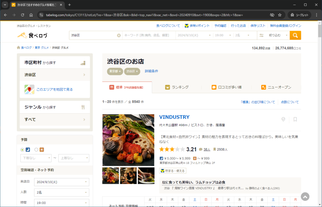url = 'https://tabelog.com/tokyo/C13113/rstLst/?vs=1&sa=%E6%B8%8B%E8%B0%B7%E5%8C%BA&sk=&lid=top_navi1&vac_net=&svd=20240910&svt=1900&svps=2&hfc=1&sw='