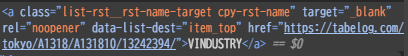 classに店舗URLのaタグについてそうなlist-rst__rst-name-targetという名前もついていますね。一覧ページの店舗表示件数は20件なのでclass名がlist-rst__rst-name-targetの要素数を抽出し、それが20件であれば店舗URLを示すaタグであるということになりそうなので確認してみます。