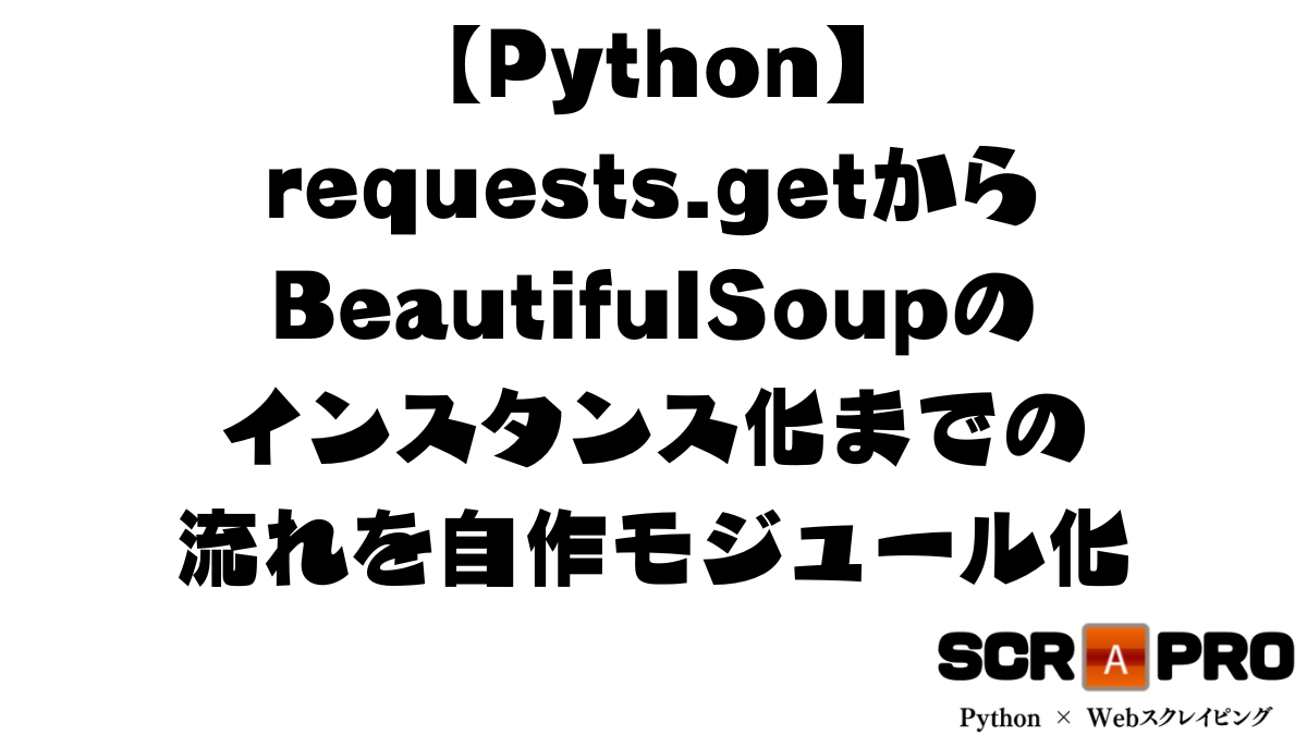 私はPythonでrequestとbeautifulsoup4モジュールを組み合わせてWebスクレイピングをすることが多いのですが、コーディング量を減らしたいということでrequests.getからBeautifulSoupのインスタンス化までの流れを自作モジュール化しました。